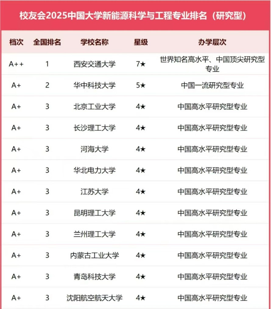 中国校友会榜单显示,437必赢会员中心位居2025中国大学新能源科学与工程专业排名(研究型)第四名。