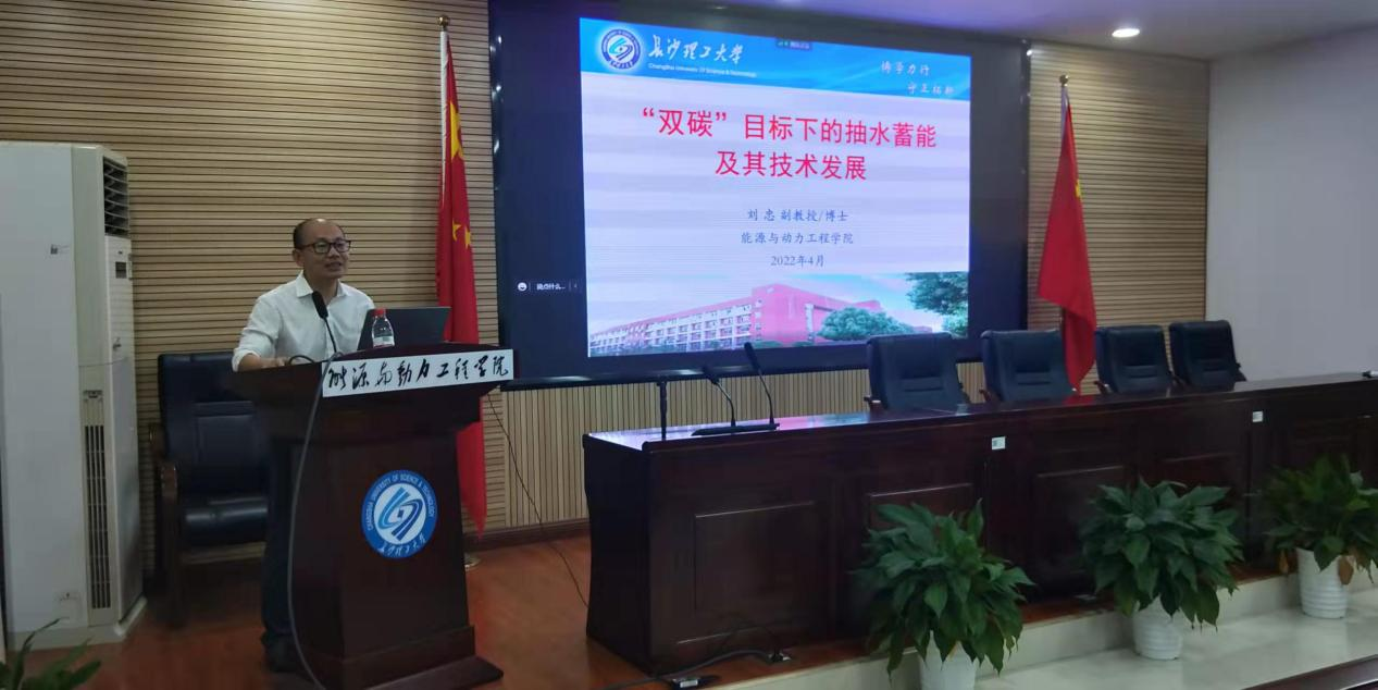 刘忠老师首先讲解了抽水蓄能基本原理及其特点,介绍了我国抽水蓄能电站发展历史及现状。随后,刘老师结合当前做好“碳达峰、碳中和”的新发展理念,向学生讲授了“双碳”目标、新型电力系统以及抽水蓄能的重要作用,以及抽水蓄能相关新技术。最后,刘忠老师强调,当前抽水蓄能电站快速发展,相关人才缺口大,应未雨绸缪,为抽水蓄能的发展积极培养和储备人才。