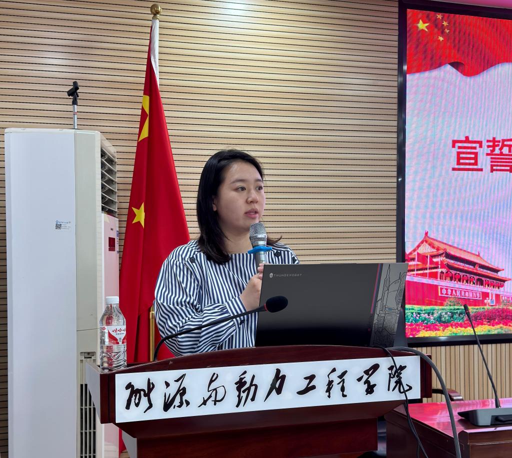 仪式伊始,全体学员起立奏唱国歌庄严宣誓,罗亦欧宣读第三十一期预备党员培训班学员名单、管理条例及培训环节。党课环节,罗亦欧围绕 “接受党员要有预备期”“预备党员在预备期间需要注意的几个问题”“预备党员转正的程序”“党员的教育管理”四个方面的内容,深入且细致地讲解了预备党员预备期设立的意义、预备期间思想和行动上的规范、转正所需的各项流程以及党员教育管理的重要性和具体措施等,帮助学员更好地了解党员发展流程,明晰自身责任。