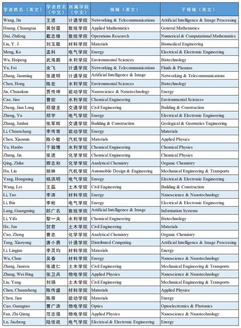 全球前2%顶尖科学家“年度科学影响力排行榜”榜单