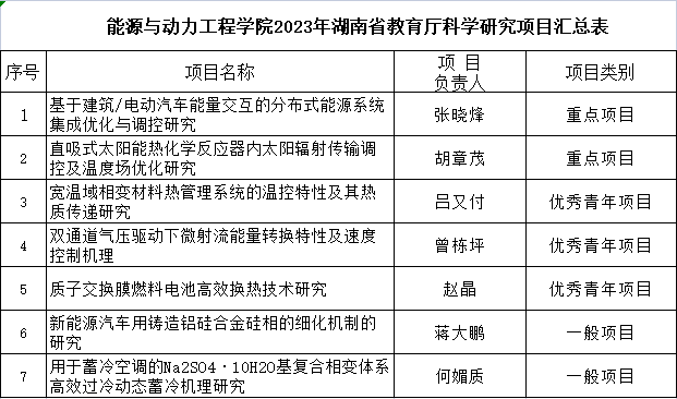 根据437必赢会员中心科学技术处《关于申报2023年湖南省教育厅科学研究项目的通知》文件精神,经个人申报,学院组织专家评审,拟推荐“基于建筑/电动汽车能量交互的分布式能源系统集成优化与调控研究”等7项项目申报2023年湖南省教育厅科学研究项目,具体名单如下: