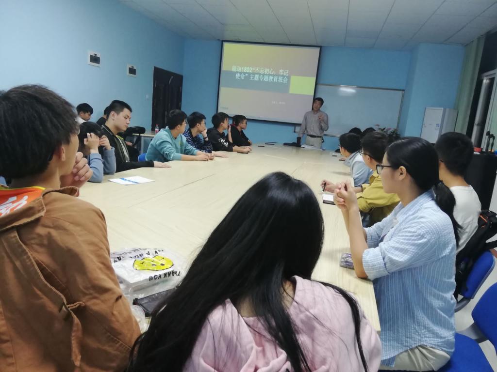 按照学校党委要求,为进一步落实立德树人根本任务,推进习近平新时代中国特色社会主义思想“三进”工作,坚持用习近平新时代中国特色社会主义思想武装学生,擦亮青年学生的政治底色,10月20日晚上七点,能动1802班在新能源二号楼503室开展了开“不忘初心、牢记使命”主题教育专题班会,分析测试中心副主任黄永华深入班级为大家进行导学。
