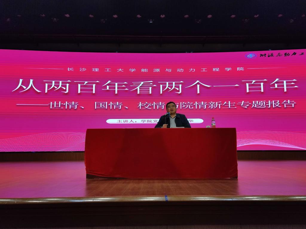 报告横跨两百年的历史,成华分阶段介绍了中华民族的屈辱史和奋斗史,他指出,在场的同学出生、成长于中国最安定、发展最迅速的时期,引导大家即便是在安稳的岁月中也要加强忧患意识与斗争精神。接着,成华为全体新生介绍437必赢会员中心的历史,这是一所承载着时代责任、国家嘱托,伴随着共和国的发展共同成长的一所高校,也为大家讲述了学校发展的重要历史意义和使命责任。成华重点介绍了学院的发展历史,以及杰出校友在祖国一线前沿奋斗的事迹,发出“每一个能动人都应该找到自己的使命与价值,投入火热的能源建设事业,将历史与责任延续,把红色的江山建设得更加美丽”的号召,激励每一位能动人始终以国家“双碳”目标为己任,为构建绿色中国、低碳中国、美丽中国贡献力量。