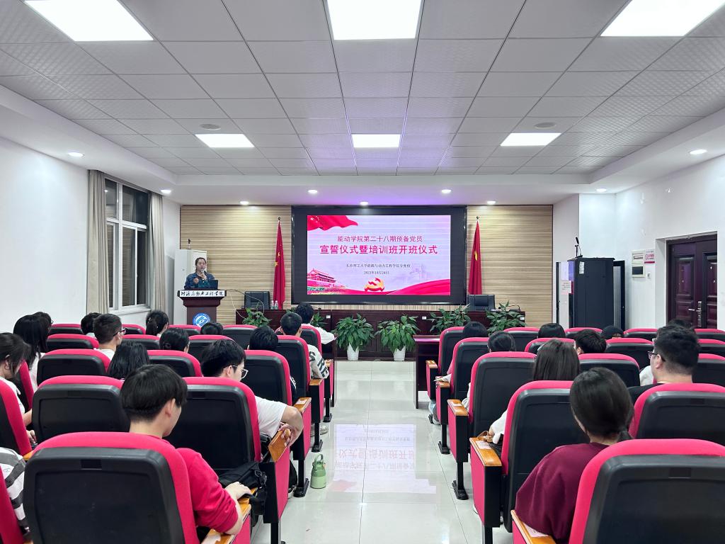 开班仪式伊始,全体学员面对党旗,庄严宣誓,由本科生第四党支部吴定峰领誓。随后,罗亦欧为全体学员授第一节党课《过好预备期,做合格党员》,罗亦欧从新党员要有预备期的必要性、党员在预备期的注意问题、预备党员转正程序、党员的教育管理四个方面出发,联系实际案例进行阐释与教育。她还以二十大的报告为例,向学员们分享了党建知识学习方法,鼓励学员们利用好“学习强国”网页、习近平总书记系列重要讲话数据库等学习资源,加强自我教育。