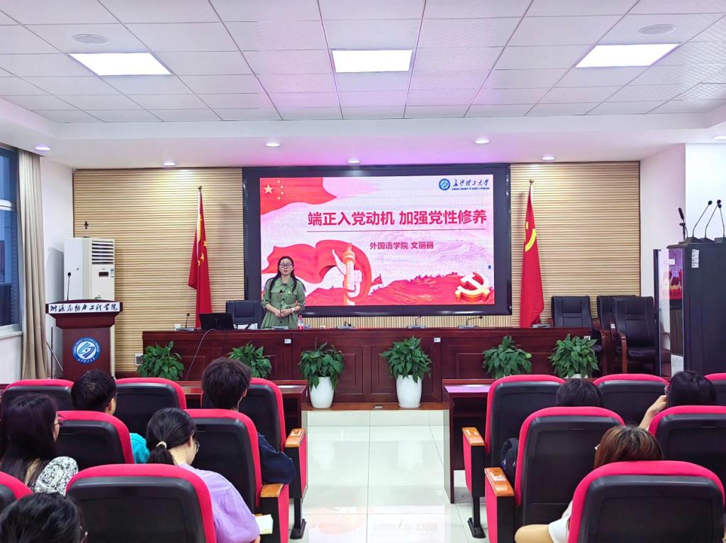 5月9日晚19:00,能动学院第二十期发展对象第三次党课在新能源大楼502会议室顺利开展。本次党课由外国语学院党委书记文丽丽授课,内容为《端正入党动机,加强党性修养》,第二十期发展对象培训班全体学员参与学习。