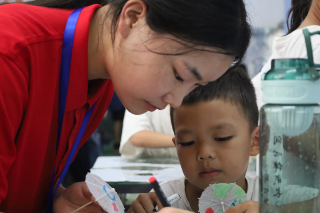 动手环节,孩子们化身“小匠人”,专注设计绘制伞面。锦鲤、牡丹等图案跃然纸上。“以前觉得油纸伞很美但很远,”一位小朋友感叹道,“今天亲手画,才懂它的故事。这么美的传统,我们该传承下去!”