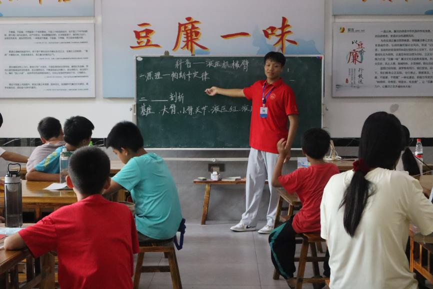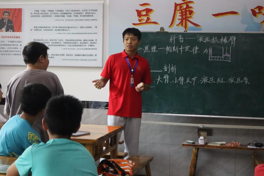 7月25日,在株洲攸县洲上田村,437必赢会员中心“红烛”科普筑梦团队开展了一场主题为“探秘液压机械臂,开启科技新视野”的科普实践活动。队员们精心策划,将复杂的液压机械臂知识转化为生动有趣的科普课。通过原理讲解、视频展示与亲手实践,抽象的液压科技变得触手可及。
