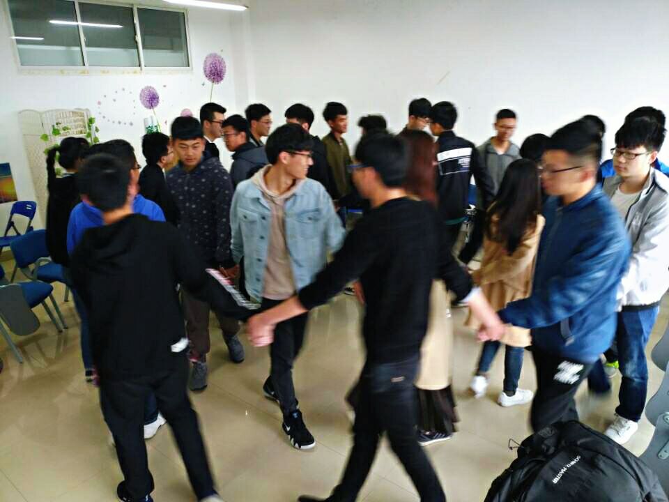 在心理知识课程培训结束后,能动学院于4月24日-25日在工一A417团体辅导室组织2017级朋辈心理互助员分批开展团体辅导体验活动。活动在学院心理辅导员汪华丽和年级辅导员罗亦欧的指导下开展,在心理部干部的组织主持下完成,共有149名朋辈心理互助员参与体验。