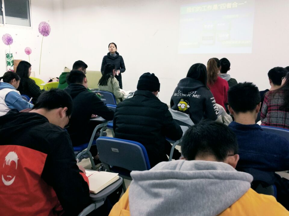 12月1日中午12:30,能动学院在成长辅导室举行朋辈心理互助员培训会议。会议由学院心理辅导员汪华丽主讲,朋辈心理工作部成员和2017级全体班级心理委员与会。