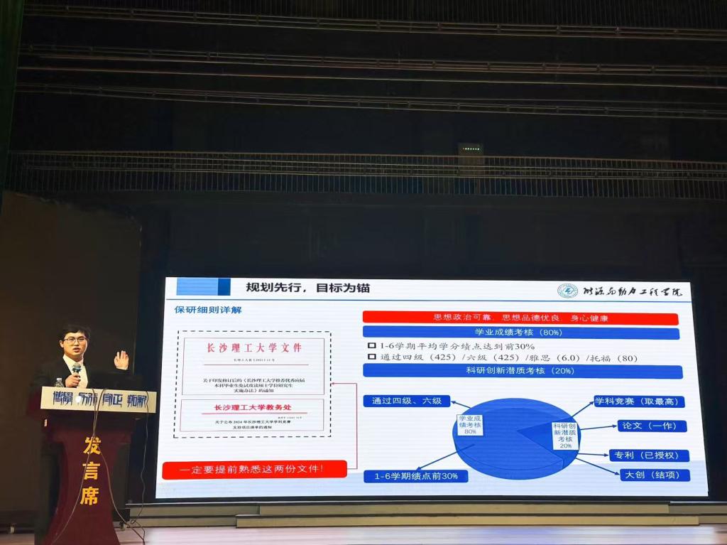 在经验分享环节,上学期满绩4.0且已成功保研至中科院工程热物理研究所的能卓2101班胡家贤同学,从保研时间节点、学习方法、竞赛经历、信息渠道等方向,鼓励同学们做好个人规划,有效利用网络资源,加强课堂内外联动学习,破学科边界织知识网;热动2201班李佳琪同学结合自身学习心路历程,建议同学们牢固树立理想信念,科学制定学习计划,勇敢尝试参加学科竞赛,合理规划学习生活时间;已签约中广核苍南核电有限公司的新能源2103班李林健同学从信息获取、面试流程、后续安排等方面介绍了中广核联培班签约要求,引导同学们要夯实学习基础,积极参与校园活动,为个人成长和未来发展积累经验。