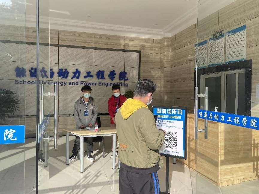2.安排研究生党员在新能源大楼大厅值班,对进入新能源大楼的人员进行佩戴口罩情况检查、测量体温、扫描场所码并出示健康码,外来人员进行登记检查。