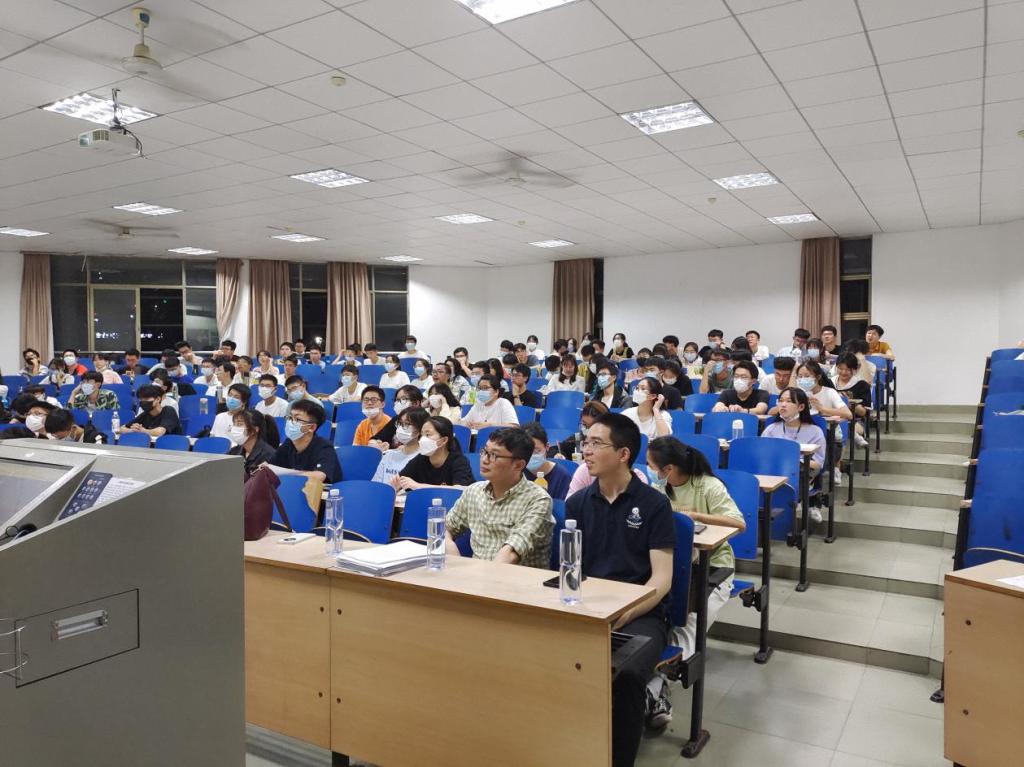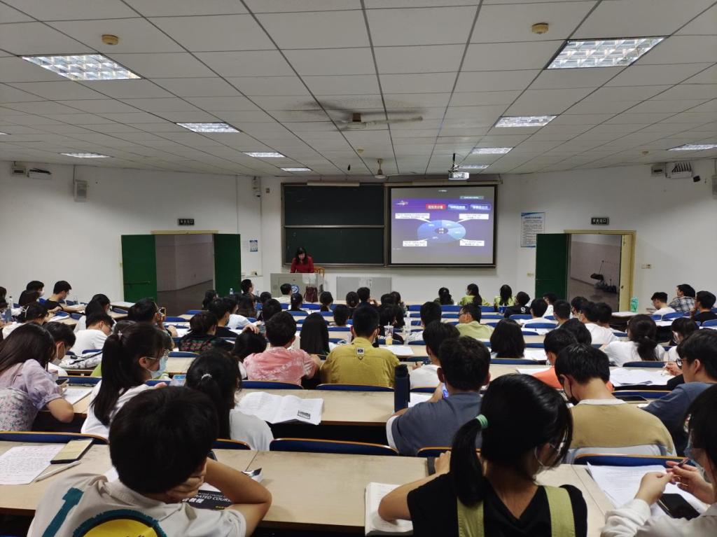 首先,冯春老师上台对本次培训的目的和全国大学生英语竞赛的相关事宜进行讲解;接着钟桂蓉老师上台对竞赛的整体题型进行高度概括,再放出获奖学长分享的经验视频,随着钟桂蓉老师对试卷题型一一分析、教给大家应对策略和考前准备,同学们也积极记录。最后张晓烽总结发言,讲述了他对英语竞赛的看法,最后表达了对大家的殷切期盼。