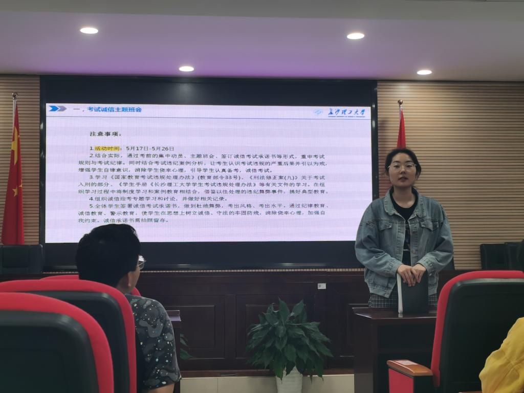 会议第二项,考试诚信教育。会议要求各班通过考前的集中动员、主题班会、签订诚信考试承诺书等形式,重申考试规则与考试纪律,消除同学们的侥幸心理,引导同学们认真备考,诚信考试,做到杜绝舞弊。通过纪律教育、诚信教育、警示教育,使同学们在思想上树立诚信、守法的牢固防线,消除侥幸心理,加强自我约束。