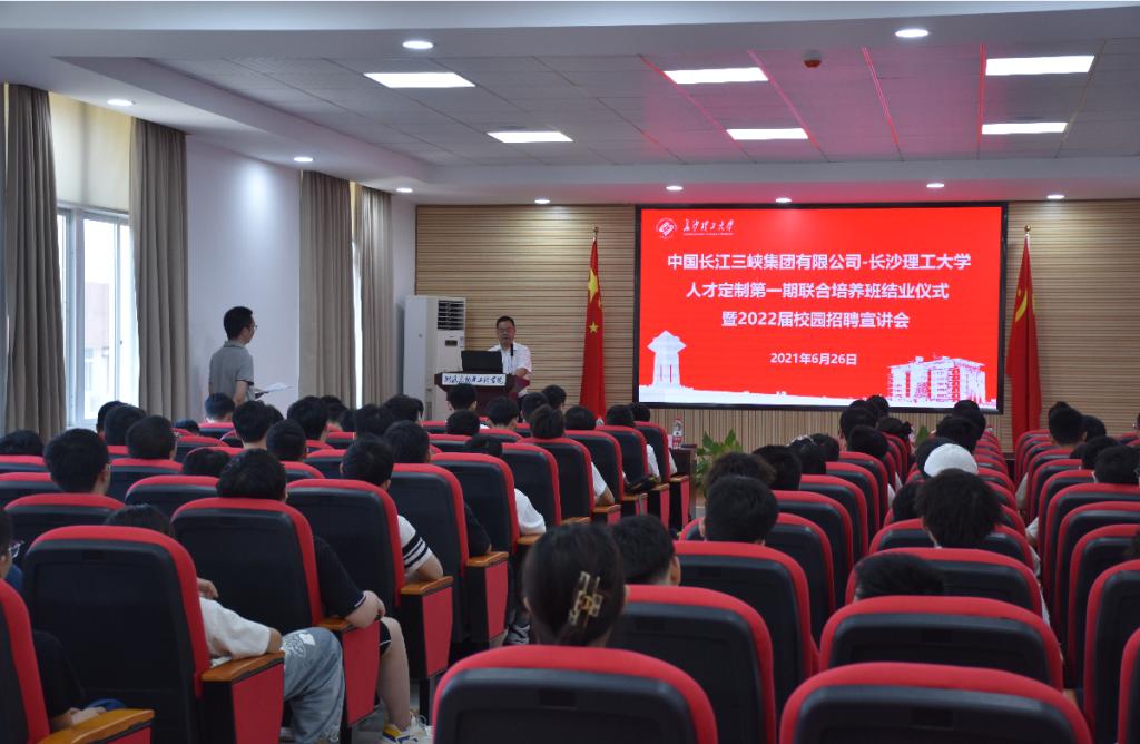 6月26日上午,中国长江三峡集团有限公司-437必赢会员中心人才定制第一期联合培养班结业仪式暨2022届校园招聘宣讲会于新能源大楼2号楼502顺利召开,中国长江三峡集团有限公司代表、必赢官网招生就业处、党委组织部、教务处代表及能动学院和联培班师生共120余人参加了此次活动。