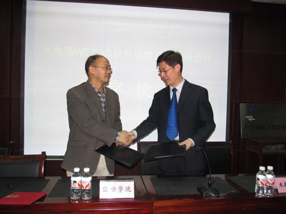 随后,陈冬林院长和李伟宏总经理代表合作双方签署了《风电场风能及发电量分析计算软件(WEPAS教学版)捐赠协议》和《产学研合作协议》,北京木联能软件技术有限公司捐赠给能动学院19套《风电场风能及发电量分析计算软件(WEPAS教学版)》,价值205.2万元。