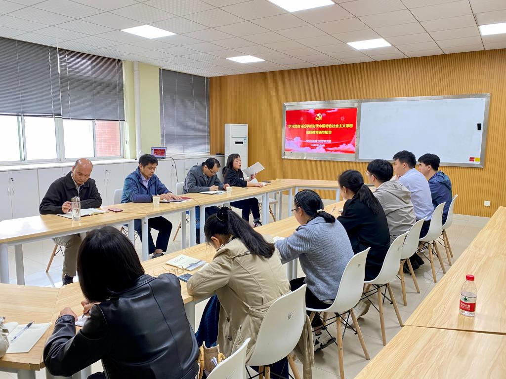 5月9日下午,在工一B417多功能报告厅,院办党支部全体党员聆听了中南大学刘新庚教授为学院全体教职工及学生党员代表所作的学习贯彻习近平新时代中国特色社会主义思想主题教育辅导报告,题为《习近平新时代中国特色社会主义思想体系学习解读》。报告从四个方面系统梳理了习近平新时代中国特色社会主义思想体系,让广大支部党员对于习近平新时代中国特色社会主义思想有了更系统的认知与理解。