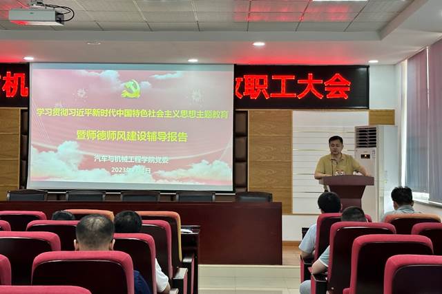 7月4日下午,在工一B417多功能报告厅,汽机学院党委邀请能源与动力工程学院赵斌教授为学院全体教职工作学习贯彻习近平新时代中国特色社会主义思想主题教育暨师德师风建设辅导报告,报告会由院党委书记施一满主持。