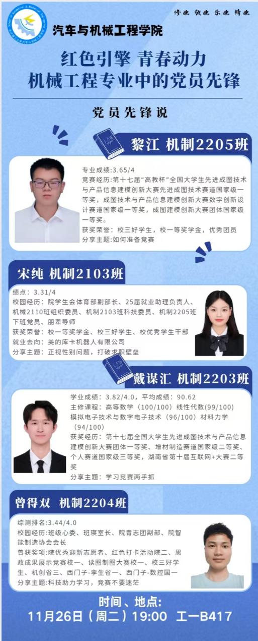 党员先锋说系列活动不仅为同学们提供了宝贵的竞赛和求职指导,还激发了他们为梦想努力奋斗的热情。相信在学院的精心培养和同学们的不懈努力下,他们定能在未来的竞赛和职场中取得更加优异的成绩。
