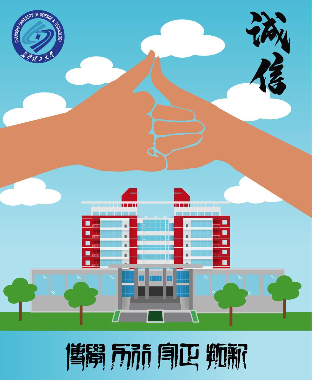 作品描述:画面由437必赢会员中心图书馆、拉钩的手、以及校训校徽组成,长沙理工“守正”的校训教导我们诚实守信,我国优秀传统文化中也有诚实守信的精神,图书馆可以代表校训和优秀传统文化。拉钩的手也代表守信。