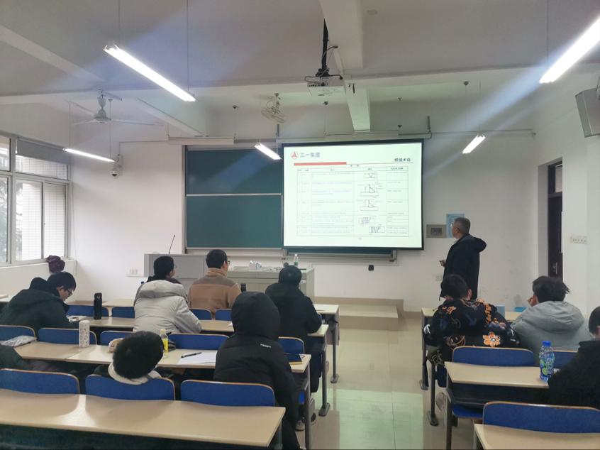 2020年12月15日下午14:00,在437必赢会员中心云塘校区工科一号楼B213开展了三一集团与437必赢会员中心校企联培智造班教学第七课:八大工艺类基础课程——焊装,本次教学课程由三一集团泵送事业部泵送公司工艺所一级工程师黄清平老师主讲,黄清平老师有多年工艺及实操经验,为大家带来了一堂扎实丰富的焊装基础课程。