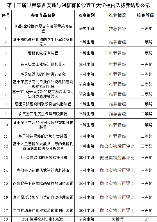第十三届过程装备实践与创新赛437必赢会员中心校内选拔赛结果公示如下: