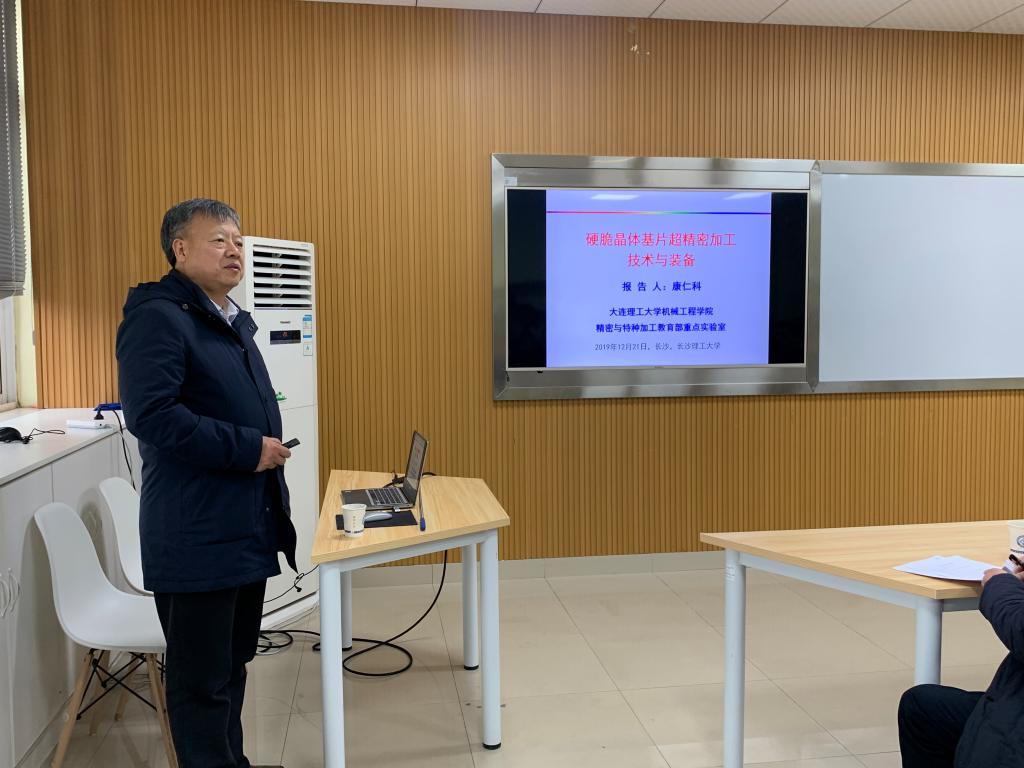 12月21日上午10点,应汽机学院及机械装备高性能智能制造关键技术湖南省重点实验室邀请,大连理工大学康仁科教授在云塘校区工科一号楼B411报告厅做了题为“硬脆晶体基片超精密加工技术与装备”的学术报告。学术报告会由汽机学院副院长毛聪教授主持,胡永乐书记、胡宏伟教授、张健教授、张明军副教授、唐昆博士、湖南大学黄向明教授,以及学院相关专业研究生等六十余人聆听了此次讲座。