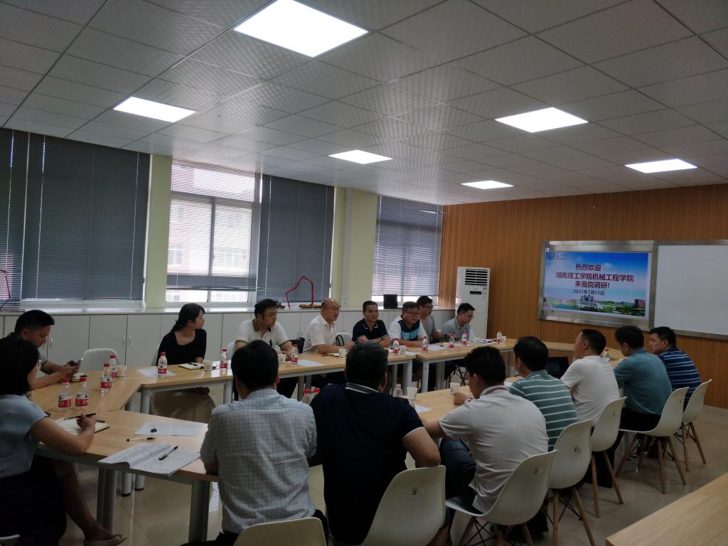 7月15日上午,湖南理工学院机械工程学院院长张晓红一行9人来汽机学院开展交流调研。会议在工一B411会议室举行,汽机党委书记施一满,院长杜荣华,副院长毛聪、胡林、尹来容,机械系主任、汽车系主任,新进教师代表参加了调研会议。会议由杜荣华主持。