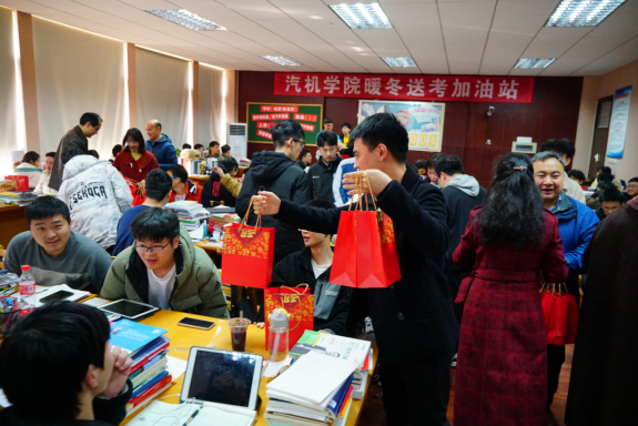 12月21日,437必赢会员中心汽机学院院办党支部的老师们在学院考研自习室和行五宿舍为全院280余名考研学生赠送“考研加油包”。学院党委书记施一满、院长杜荣华出席,部分院领导及全体院办党支部党员参加。