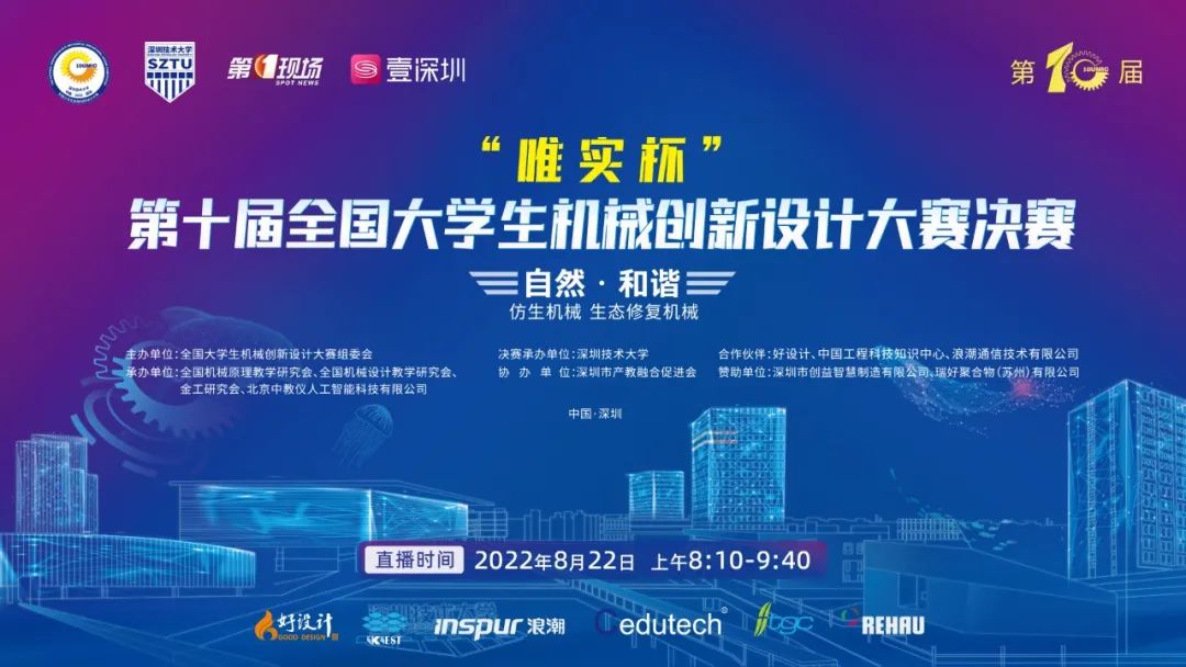 8月22日-23日,2022年“唯实杯”第十届全国大学生机械创新设计大赛决赛在深圳技术大学举行,本次大赛由大赛全国大学生机械创新设计大赛组委会主办,深圳技术大学具体承办。437必赢会员中心从省赛中奋力突围的3支代表队参赛,成绩取得历史性突破,共斩获全国一等奖2项,二等奖1项,获奖等级与数量创必赢官网在该赛项上历史新高,是本届大赛湖南省赛区获奖等级和数量最高院校。