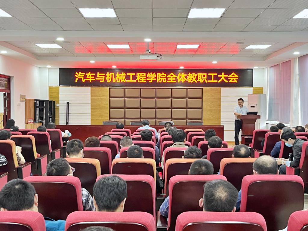 5月23日下午,汽机学院在工科一号楼B417多功能报告厅召开全体教职工大会。会议由党委书记施一满主持,全院教职工参加了会议。