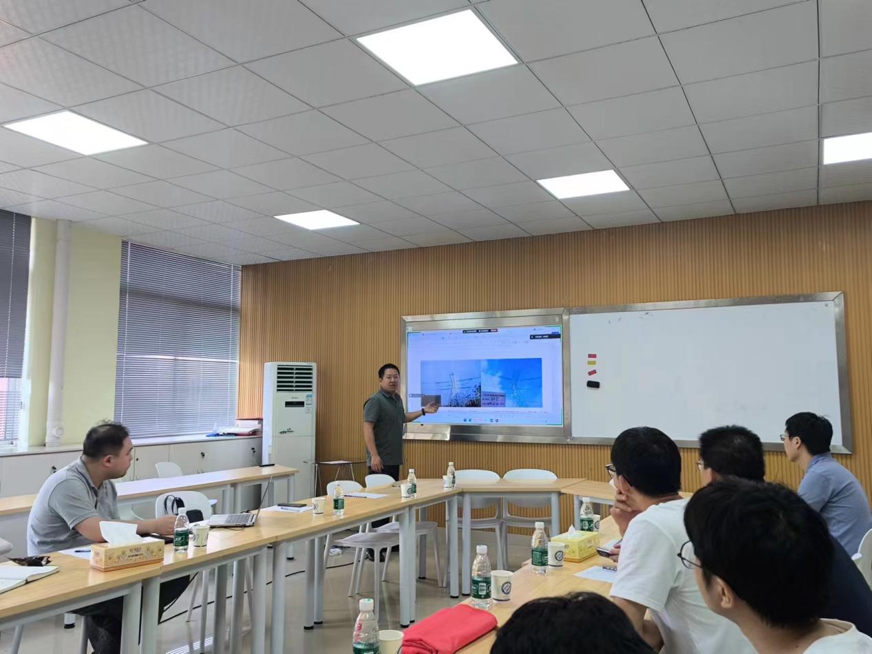 陈雨阳工程师详细介绍了当前输变电路工程机械化施工面临的挑战;邹永兴副主任介绍了宁电入湘项目现场问题集锦,强调了现场问题的复杂性与紧迫性;龚敬所长重点针对电力施工山地运输装备开发进行了交流汇报。暑期实践团成员将前期做的相关资料和实践团遇到的问题进行了交流和讨论,进一步激发了前往项目现场实地调研的热情与决心。