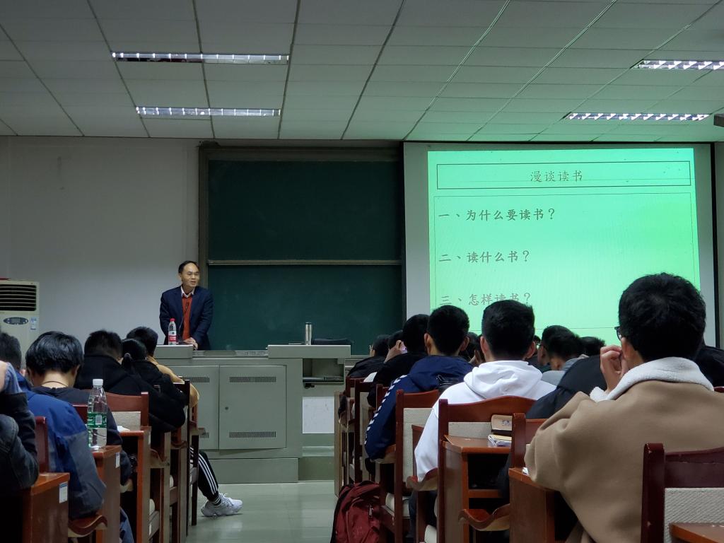 那为什么要读书呢?因为读书是快乐的,是有用的,也是有趣的。颜教授结合其自身读书万卷的经历引出兴趣是最好的老师这一金句,或书中自有黄金屋,亦或书籍是人类进步的阶梯。也正如颜教授所说,当今社会竞争激烈,而读书,可以是一种文凭,可以是一次就业机会,更可以是一次成长。“知识改变命运,学习改变人生”这句话真没错,也正是因为读书,我们的世界变得更大,圈子更大,收获亦更大。颜教授指出,我们年轻人,好读书,读好书,读书使我们知道自己的无知。那我们要读什么书呢?颜教授认为,我们要读经典,读常识,读名著。通过众多经典,高校书籍的介绍,进一步引起同学们的兴趣。我们怎样读书呢?颜教授也作出了回答:“带着问题去精读,做到口到眼到心到以及手到”。这也正是当代青少年们读书所缺少的!漫谈读书,就像我们漫游于绚丽的宇宙太空中,沉醉于此。最后,颜教授提供了几个读书平台网站和其微信号。