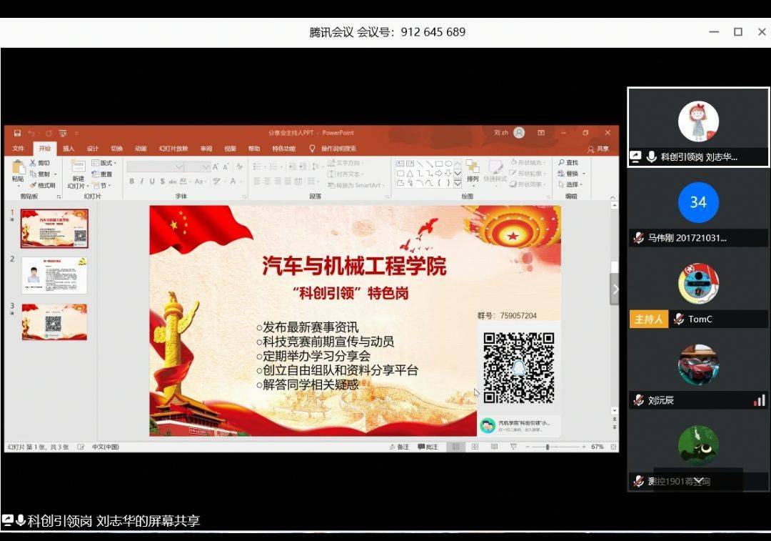 汽机学院学生党总支“科创引领”特色岗工作组通过腾讯会议开展两场科创“云讲座”。本次“云讲座”由17级党员成云滔、朱俊丞两位同学担任讲座的主讲人,受益人数达220多人。
