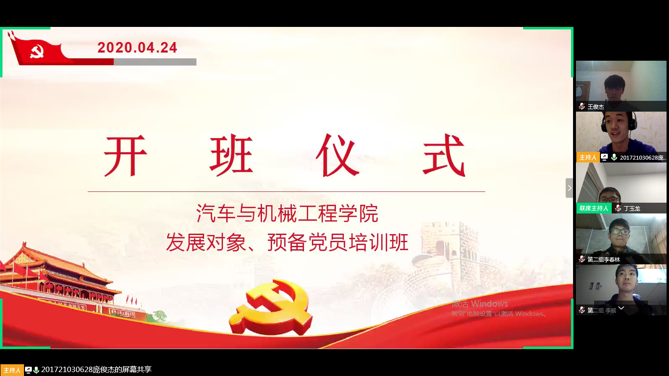 4月24日晚18:30,汽车与机械工程学院第11期发展对象及第21期预备党员培训班开班仪式通过腾讯会议顺利举行。党建辅导员王丽丽老师、本期56名发展对象和71名预备党员按时参加。本次仪式由庞俊杰主持。