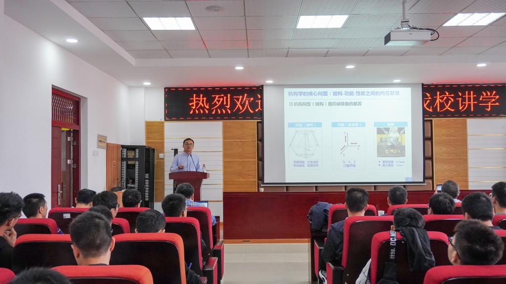 报告以机构构型是机械装备的基因、机器人制造加工模式与装备构型、面向工程实际进行机构构型创新三个专题展开。李秦川教授通过列举动力助力外骨骼、可折展多面体机器人、仿生蝙蝠机器人等实例带领聆听者们从机构学理论畅游到工程实际,使在场师生有效的理解结构-功能-性能三者之间的内在联系及机构学于前沿科学的应用。提问环节,在场师生争相向李秦川教授提问,场面十分热烈,李秦川教授一一解答。最后,李秦川教授以积极主动的沟通、脚踏实地的奋斗、强身健体的本领三点建议赠予在座的全体研究生。