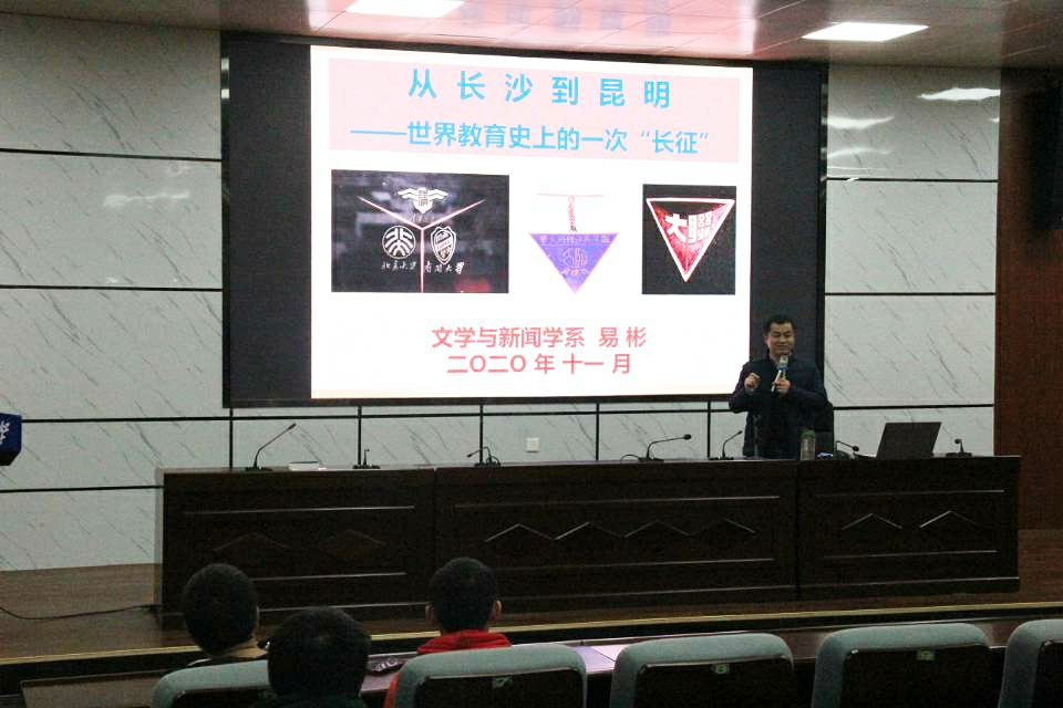 2020年11月30日,在437必赢会员中心金盆岭校区4教报告厅,中文系教授易彬受邀到长理匠心学堂通识讲坛为同学们做主题为“从昆明到长沙—教育史上的一次长征”讲座。