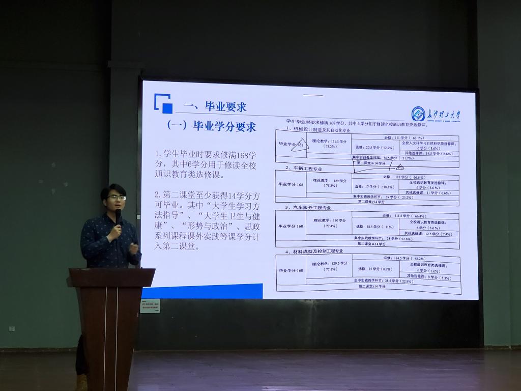 各系部老师从专业历史、就业前景、专业优势等方面,向同学们详细介绍了学院机械类分流专业:机械设计制造及其自动化,车辆工程,汽车服务工程和材料成型及控制工程。教务办李朝晖老师还为同学们解读了专业分流方案。各位老师对同学们的疑问进行了细致解答,让同学们对学院的各个专业以及专业分流方案有了一个清楚且仔细的了解。