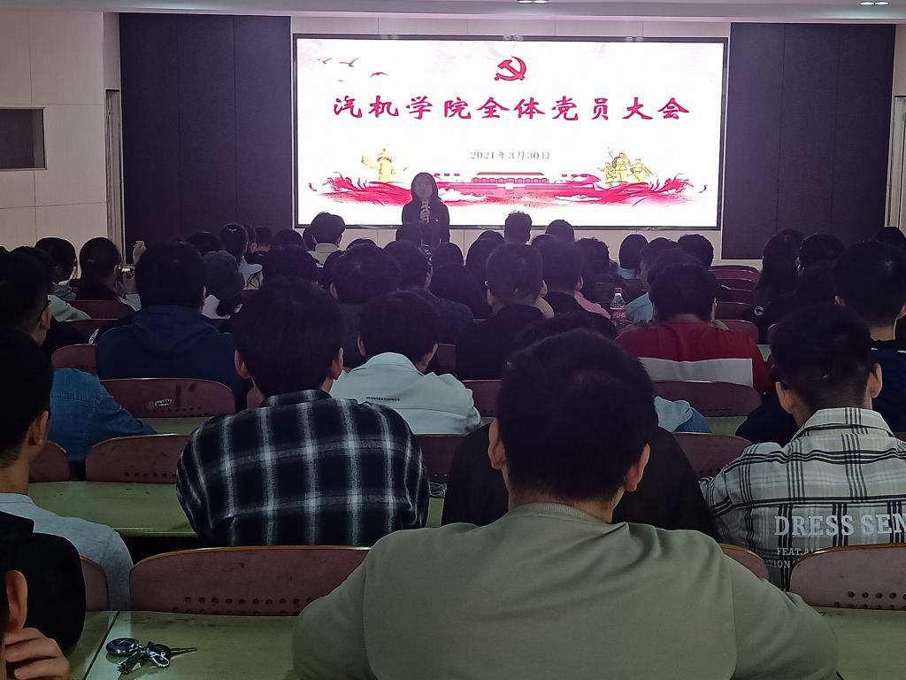 3月30日下午16:30,汽车与机械工程学院在工科三号楼A307召开全体学生党员大会,院党委副书记刘亚辉、党建辅导员王丽丽和240余名学生党员按时参加。