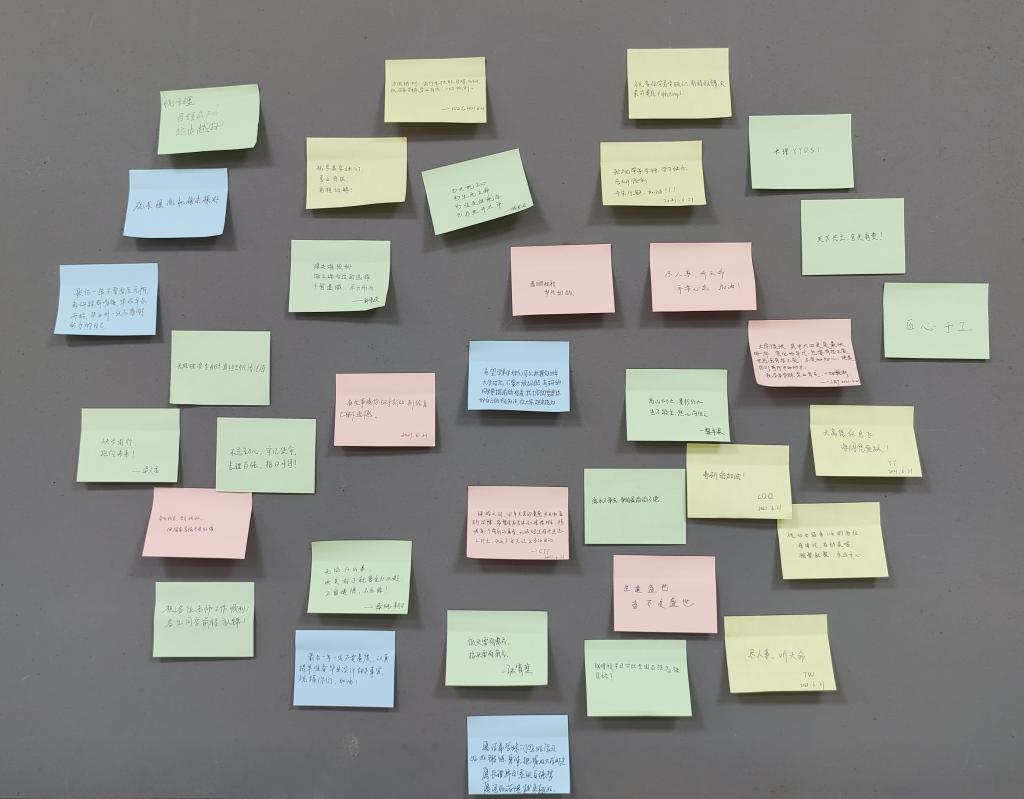 活动中,毕业生党员们真诚地为学弟学妹们写下心里话,也积极为学校提出宝贵意见。“好好锻炼身体,珍惜美好的校园时光,让青春不留遗憾,愿长理早日实现百强梦,愿汽机学院越来越好”、“为国铸剑,我们先将自己百炼成钢,祝学弟学妹学业有成,一切顺利”、“努力终有汇报,你一定能成为想成为的人”,这一段段发自肺腑的祝愿,表达了他们对学弟学妹真诚的祝福与对母校的留恋。大家在离开这充满生机的美丽校园时,为母校留下一份温馨的记忆。