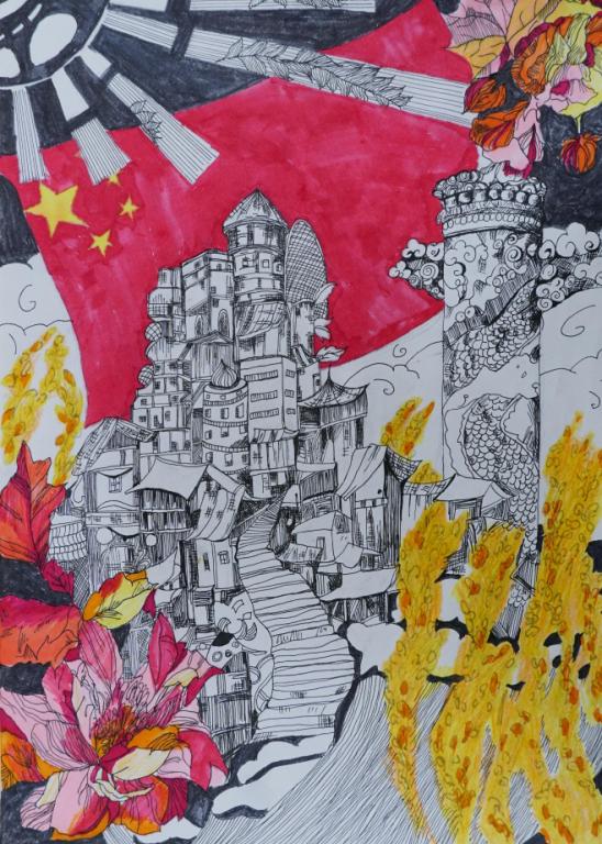 这些红色作品不仅展现了学生们的艺术功底,也强化了大家对党的理论知识学习。学生们利用课余时间挥毫泼墨、舞动丹青,表达着对未来美好生活的向往与追求,同时也传承着中国红色文化。