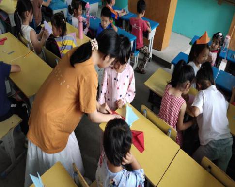 正式上课时,每位老师都各司其职,认真上课的,积极组织的,偷偷记录并留下美好瞬间的,哪里需要就去哪里支援的,相互付出,为认真做好我们的支教工作而共同努力。在课堂上,老师寓教于乐,孩子们也积极配合,音乐课上一起学歌,手工课上一起学折千纸鹤,体育课上一起运动一起玩游戏,科学课上一起探讨生活里的科学……下课时,师生间一起聊天,一起玩游戏,一起打球,一起吃饭,一起午睡,一起合影,逐渐加深了彼此之间的印象。总的来说,我们通过各种小游戏,师生间的交流与玩闹,形成了良好的师生关系,营造了良好的学习氛围,稳稳地踏出了青围支教的第一步,也为接下来的支教工作打下了坚实的基础。