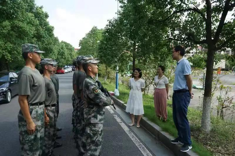 7月19日下午,汽机学院党委副书记唐宏宾,学工办主任彭琼英、辅导员陶蓝慰问了正在训练的民兵连同学,并带来降暑物品犒劳了教官们。
