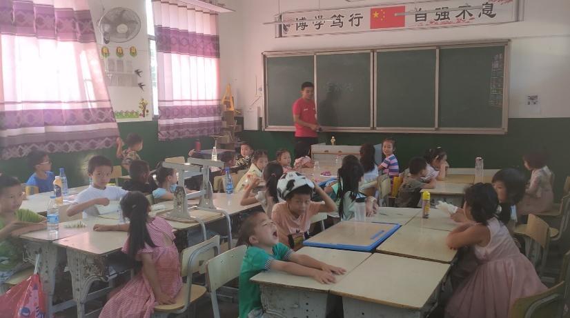 7月27日,晨光透过薄雾照拂着整个学校,长峰完小又在这样一个清晨苏醒过来。八点半的铃声响起时,孩子们已经在教室整齐的坐好,志愿者走进教室开始了一天的课程。