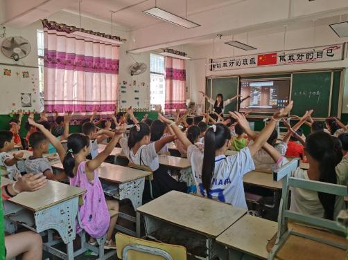 上午第一节大班手语课,文红老师刚放出音乐《大中国》教授手语操,同学们便立马跟唱,无比熟悉。孩子们都很配合,全神贯注的跟随着音乐的节拍去律动。一节课过去,孩子们已经能完整地呈现手语操。尽管速度较慢,但在短短几天能取得如此成绩,已然十分不易,而这,是志愿者和同学们相互尊重、配合的结果。