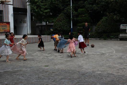 下午阳光正好,蝉鸣声伴着白云流浪,大山深处的一切是那么自然又美好。许任翔老师带着小班的朋友们在操场上玩老鹰捉小鸡。他们踊跃的报名当鸡妈妈和老鹰,像一只只刚学会飞翔的小鸟,脸上洋溢着开心的笑容,银铃般的笑声洒满这片云野。