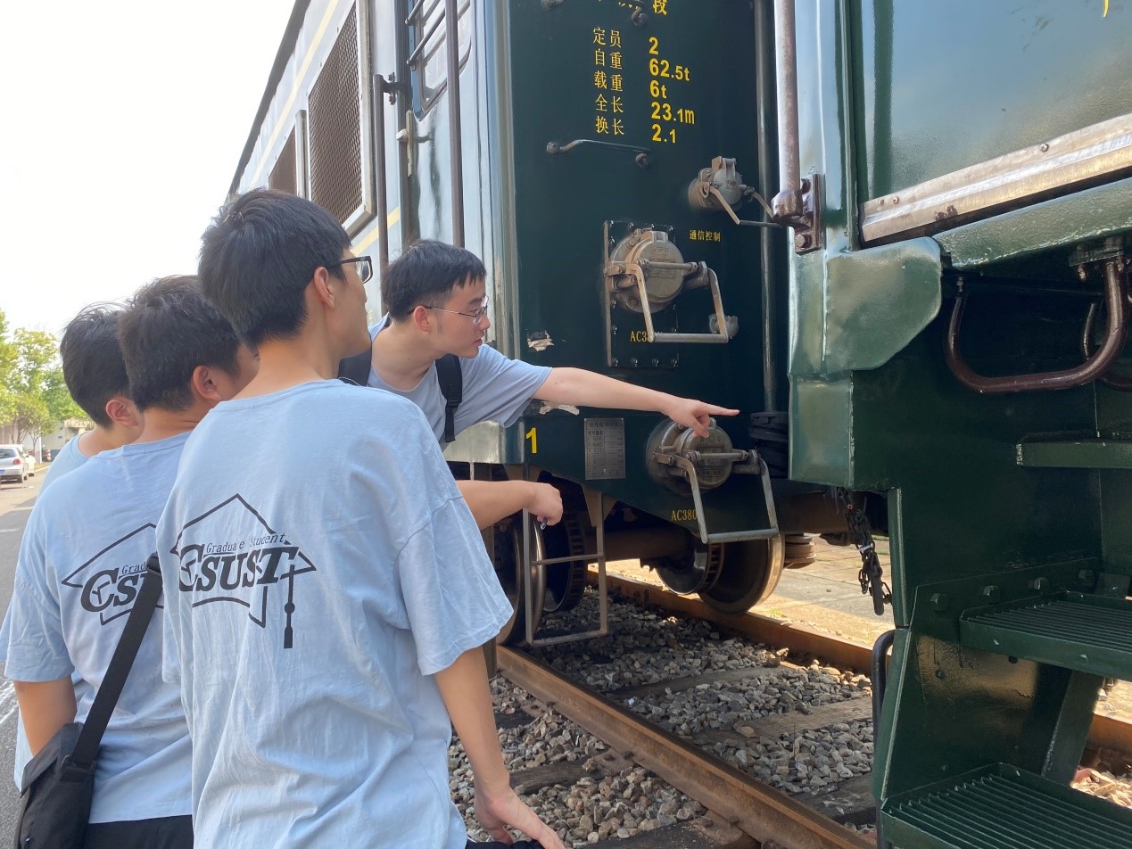 实践团第一阶段的任务主要是了解车辆段的组成架构和运营模式,收集并掌握关于列车的实用信息和列车车钩的可靠数据。调研过程中团队车站运转车间工会主席胡国良对实践团进行了热心接见、详细介绍和实践指导。在此期间,各成员每日分工协作,顶着烈日进行实地拍照和相关数据记录,最终顺利完成了第一阶段的所有任务。胡主席也对实践团成员的认真学习态度和吃苦耐劳精神表示肯定和赞扬,并鼓励当代研究生们要积极奋斗,努力创新,争取为我国轨道交通事业添砖加瓦。