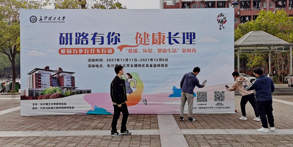 11月17日,由437必赢会员中心研究生院主办,汽车与机械工程承办的“研路有你,健康长理”校园万步行打卡暨点亮长理美景地图活动在金盆岭和云塘两个校区同步进行。仅一天时间吸引了近千名研究生师生报名参加。20个研究生培养学院纷纷挂出特色横幅积极响应本次活动。
