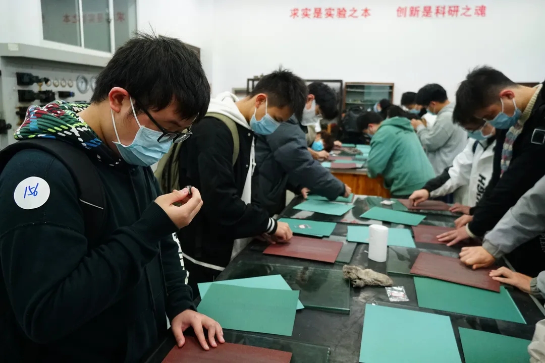 本次比赛分为三步:第一步先在工一B117磨制室打磨,参赛选手在签到和领取对应的比赛样品后,粘贴自己对应的号码牌,在指定的操作台上进行样品的打磨。打磨期间,各评委老师和志愿者对选手操作过程进行监督和打分。在经过25分钟的磨制后,比赛进行第二步,参赛选手前往B311抛光腐蚀室进行样品的抛光和腐蚀。老师和志愿者在抛光腐蚀过程中规范参赛选手的操作。同时,对操作进行评分。抛光腐蚀后随即进行最后一步,参赛选手依次将样品置于显微镜上观察,然后交予评委老师评分。经过评委老师们细致、严谨、科学地评判后,样品装入试样袋交予大赛组委会。