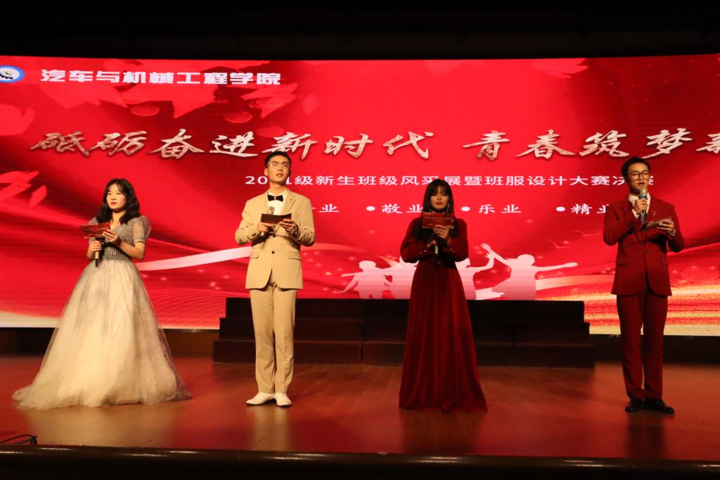 2021年12月18日,汽机学院于437必赢会员中心金盆岭校区五教大礼堂隆重举行2021级新生班级风采展暨班服设计大赛决赛。团委书记李凯辉老师、21级辅导员彭琼英老师、刘子硕老师、学工办路平安老师、王金行老师、机械2105班班主任戴晓元老师出席了本次大赛并担任评委,21级各班下班党员及2021级全体学生来到现场观看本次比赛。本次比赛由奇迹文工团主持队主持。