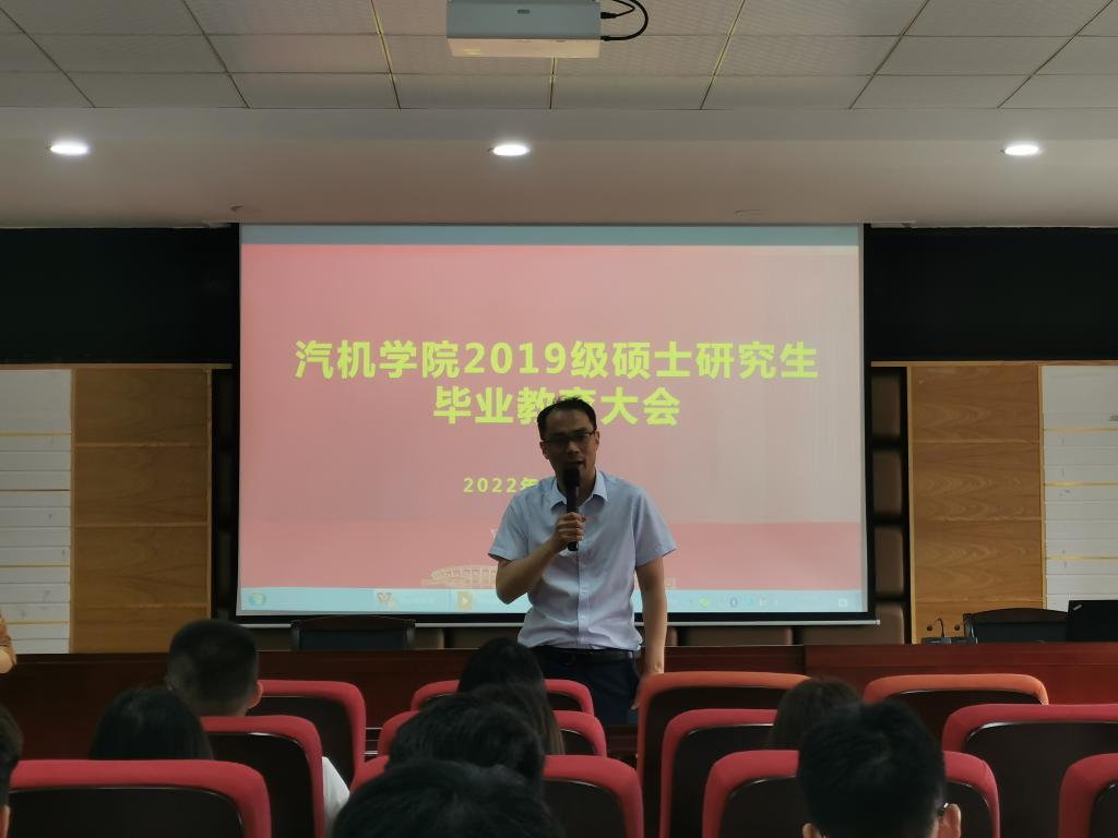 6月16日,汽机学院2022届研究生毕业生教育大会在工一B417召开,学院党委副书记唐宏宾、研究生辅导员宋新及全体硕士毕业生参加。